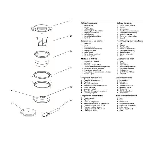 - Durch den Timer der Zubereitungszeit kann das Lieblingseis problemlos während anderen Tätigkeiten produziert werden. Es kann eine Dauer von 1-30 Minuten eingestellt werden